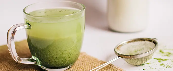 Wil je van een lepeltje groene poeder een kopje matcha thee zetten? Dan is dat zo gedaan. Neem een half theelepeltje matchapoeder en meng dat in een kommetje met een klein scheutje koud water. Zorg dat je dit goed mengt zodat er geen klontjes in zitten. Voeg vervolgens 100 ml heet water toe en blijf net zo lang kloppen tot je groene drankje een mooie schuimlaag heeft en een dikke, romige massa vormt. Om een echt goede matcha thee te maken, is het belangrijk dat je geen kokend water gebruikt. Dat maakt de thee namelijk bitter. Water van zo’n 80 graden is het beste. Voor de echte matcha-beleving klop je de thee met een mooie bamboe-whisk, maar een kleine garde of gewoon een vorkje werkt natuurlijk ook.