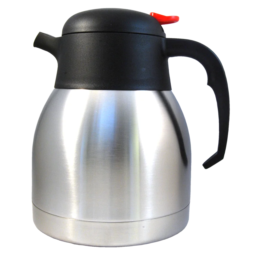 Deze rvs koffie thermoskan is ideaal voor elke vergadering en bijeenkomst, of dat nu op kantoor is, tijdens een ouderavond op school of in de sportkantine. Dit is een goede thermoskan voor koffie; het isoleert namelijk uitstekend waardoor de koffie lang warm blijft. En met een inhoud van 2 liter, genoeg voor zo’n 10 kopjes koffie, is dit ook meteen de grootste rvs thermoskan voor koffie. Deze isolerende thermoskan koffie is er ook in 1 liter (met rode knop) en 1,5 liter.