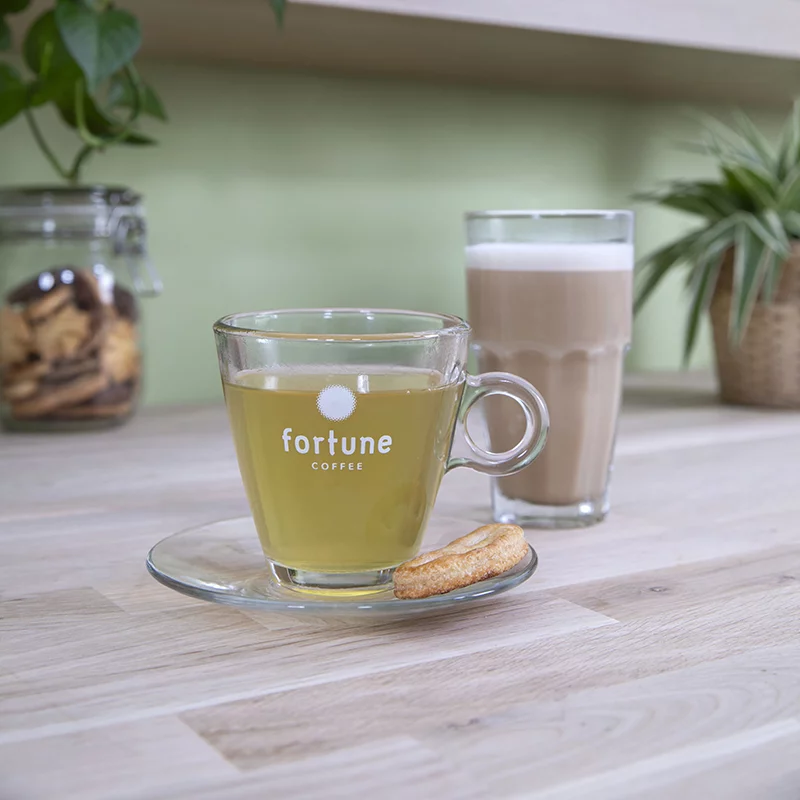- Helder, stevig glas dat jouw drankje lang warm houdt;