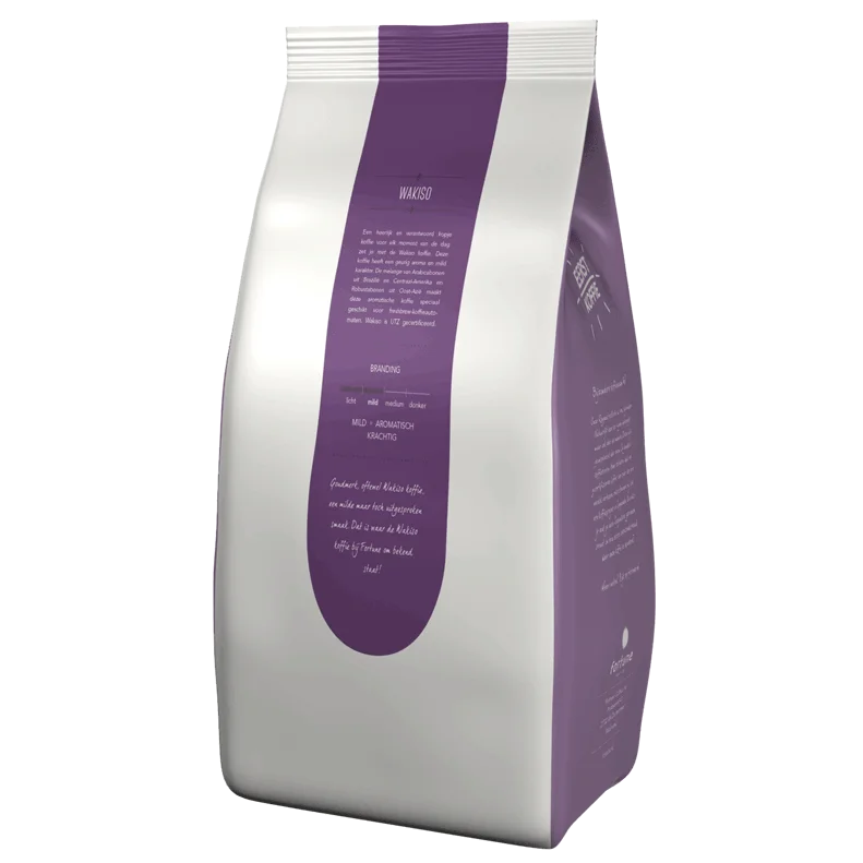 Een heerlijk en verantwoord kopje koffie voor elk moment van de dag zet je met de Wakiso. Deze koffie heeft een fijn aroma en bijzonder karakter. Subtiel, fruitig en een bijzonder fijne smaak. De melange is een samenstelling van Arabicabonen uit Brazilië en Centraal-Amerika en Robustabonen uit Oost-Azië.
