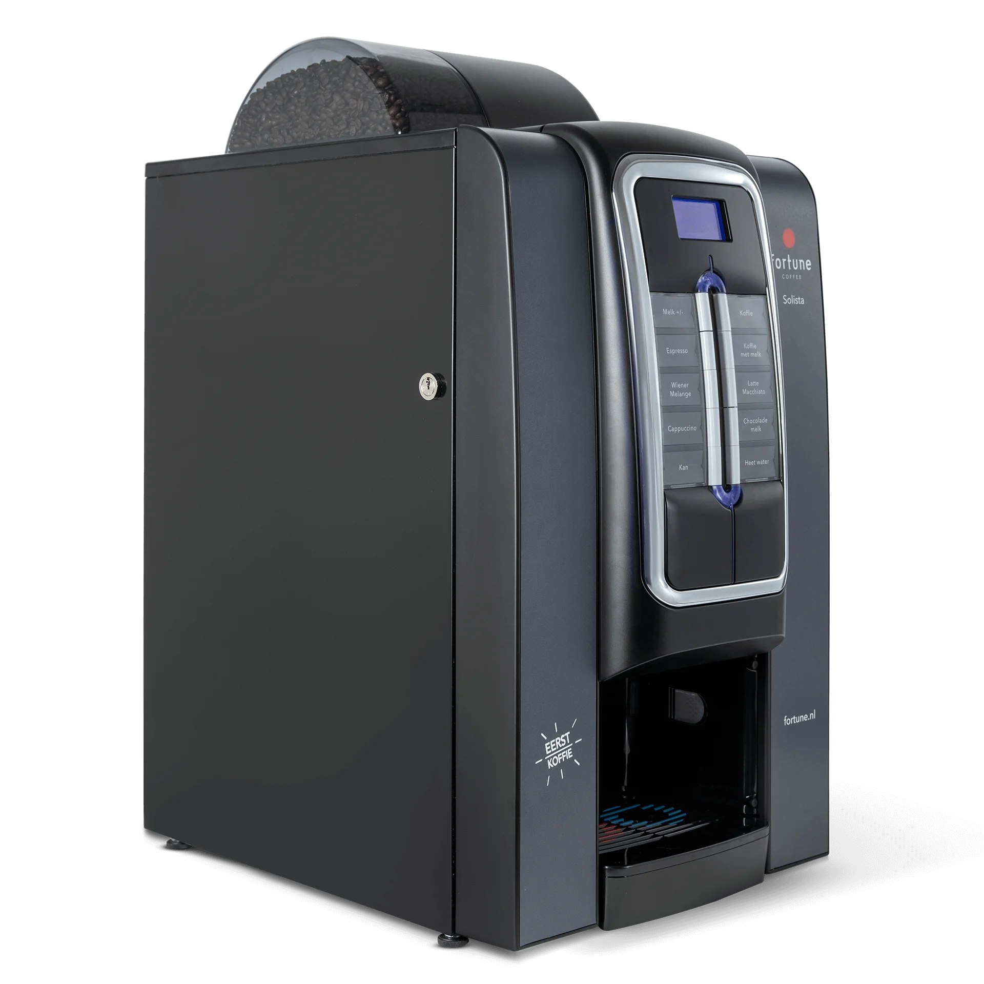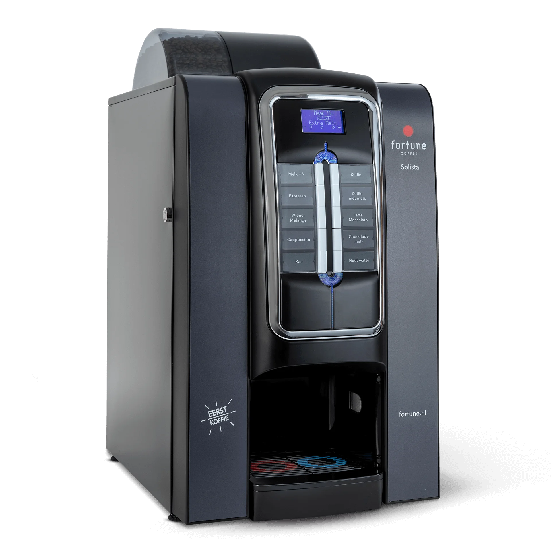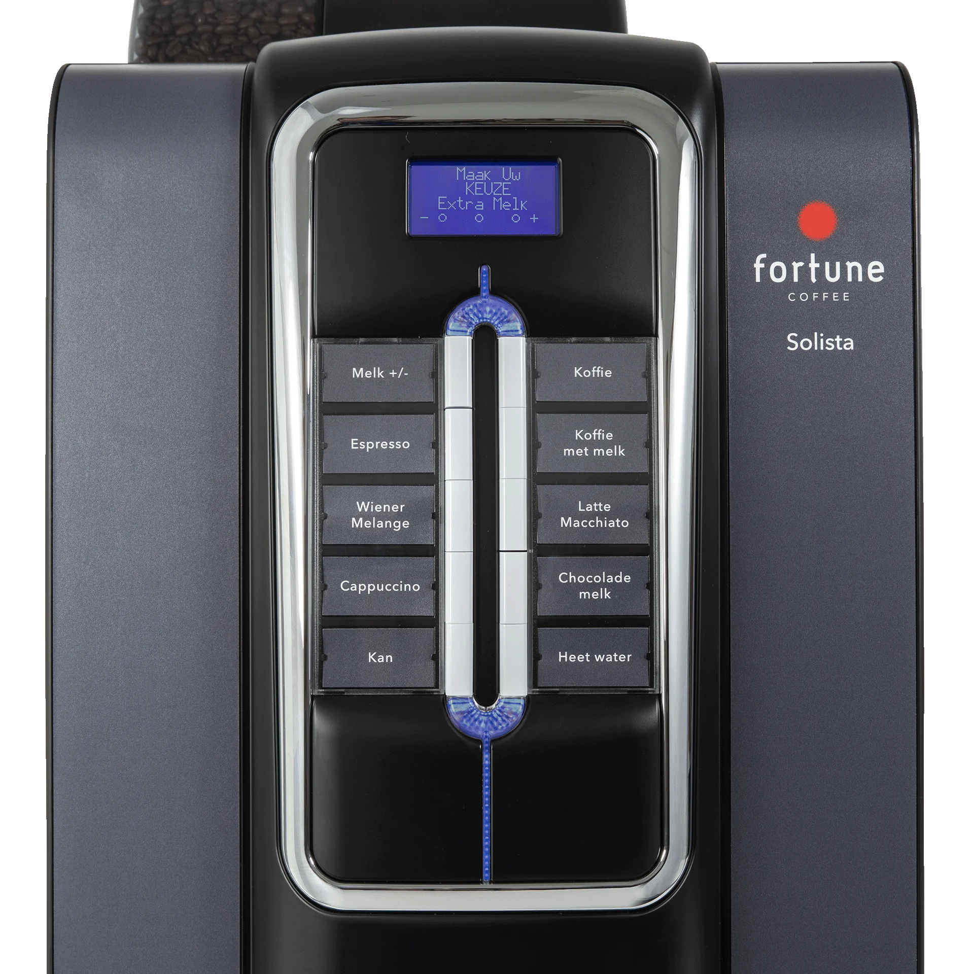 Lekker overzichtelijk en toch ruime keuze: met verschillende opties voor warme dranken biedt de Solista koffiebonen machine voor ieder wat wils. Van zwarte koffie en espresso tot cappuccino, latte macchiato en Wiener Melange. Ben je benieuwd naar alle mogelijkheden? Jouw Fortune koffieadviseur stelt de koffierecepten in naar jullie wensen.