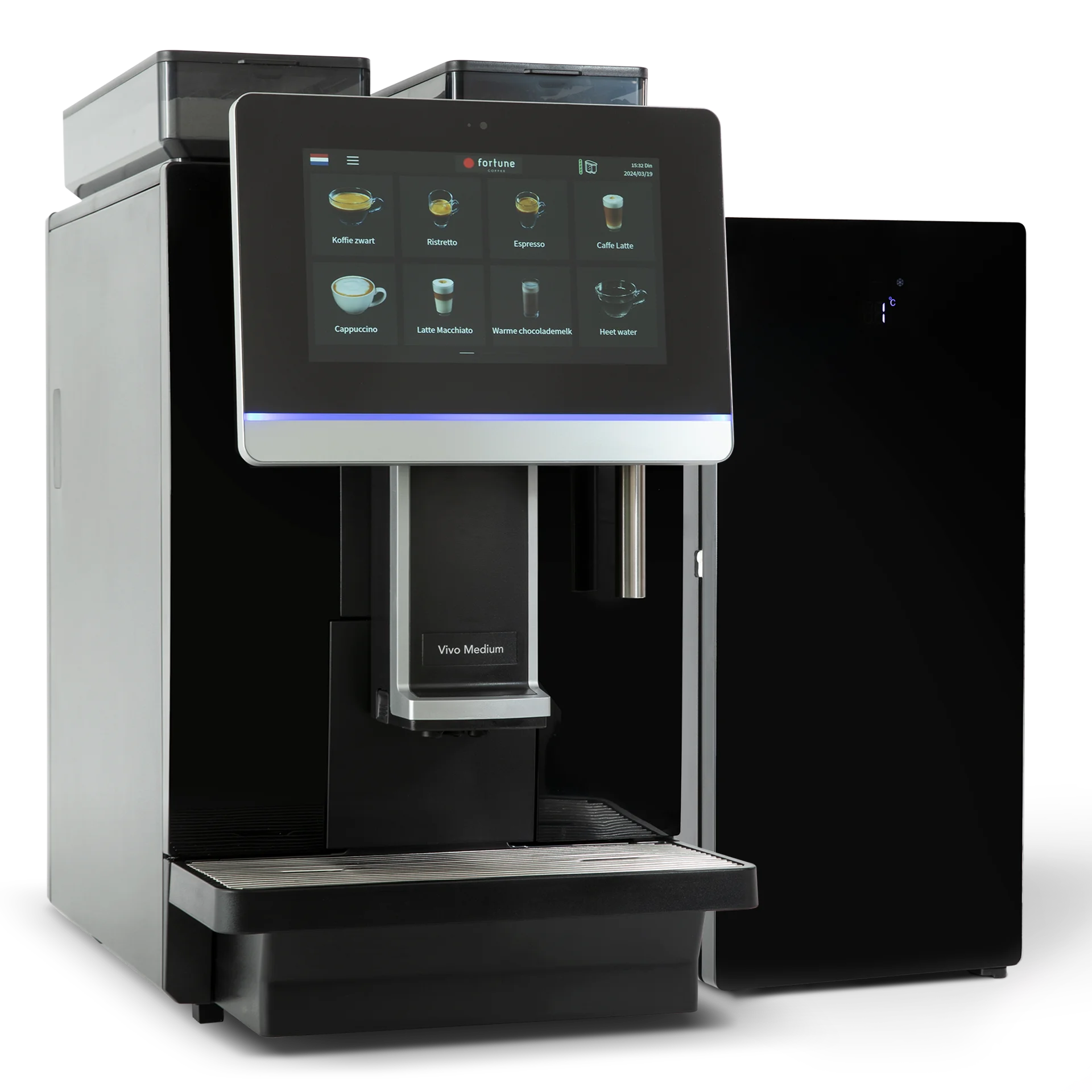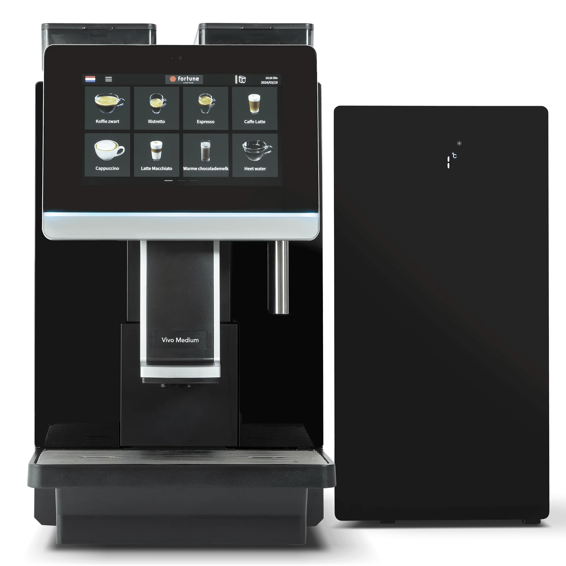 De Vivo Medium 10 inch bonenkoffiemachine heeft 2 containers en meer dan 20 drankopties. Zo heeft iedereen snel zijn favoriete warme drank. Van zwarte koffie en espresso tot cappuccino, wiener melange en espresso choc. Ben je benieuwd naar alle mogelijkheden? Jouw Fortune koffieadviseur stelt de koffierecepten in naar jullie wensen.