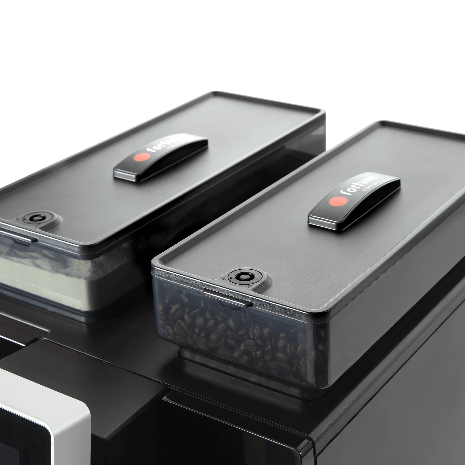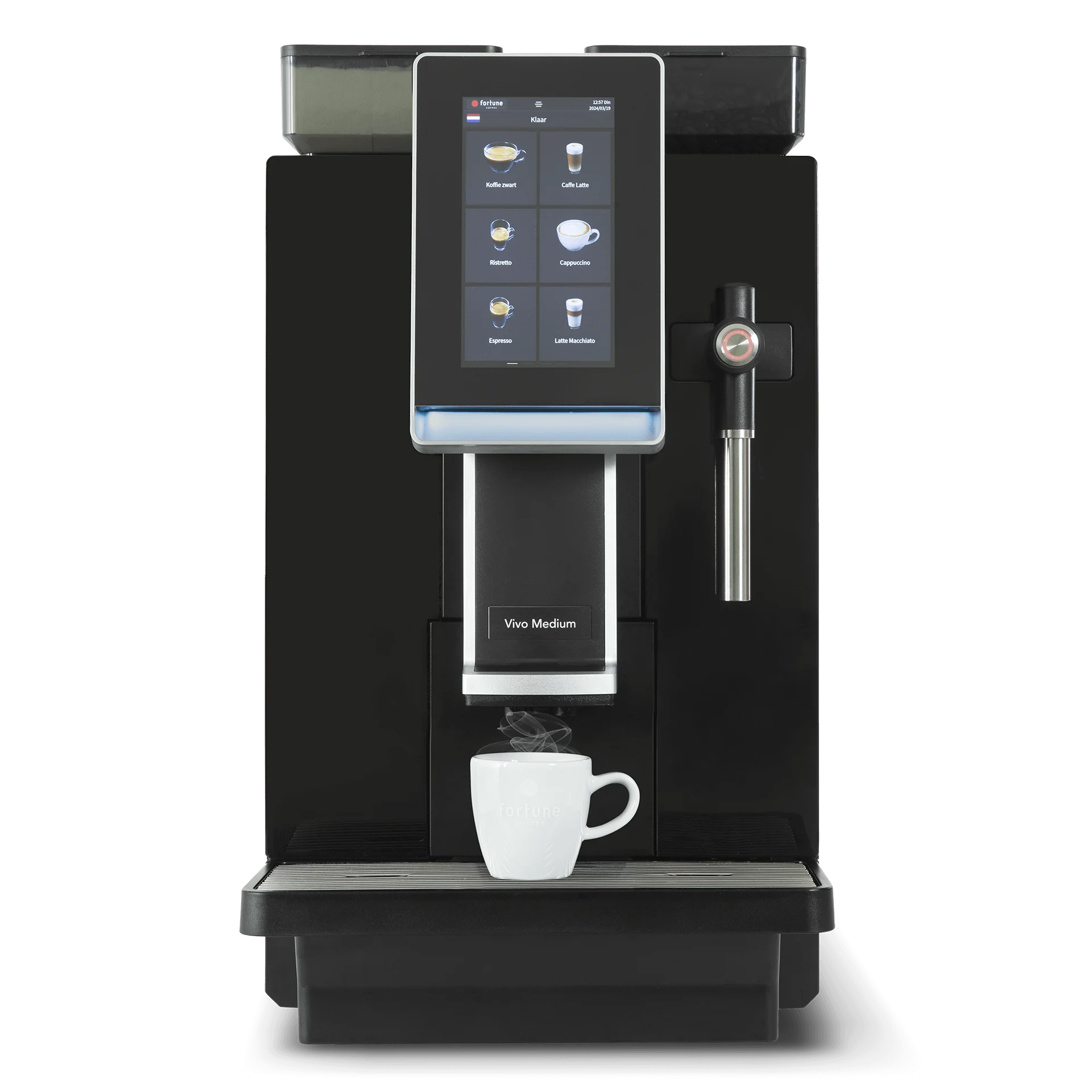 De Vivo Medium 7 inch bonenkoffiemachine is voorzien van 2 containers en heeft meerdere drankopties. Van zwarte koffie en espresso tot cappuccino. Ben je benieuwd naar alle mogelijkheden? Jouw Fortune koffieadviseur stelt de koffierecepten in naar jullie wensen.