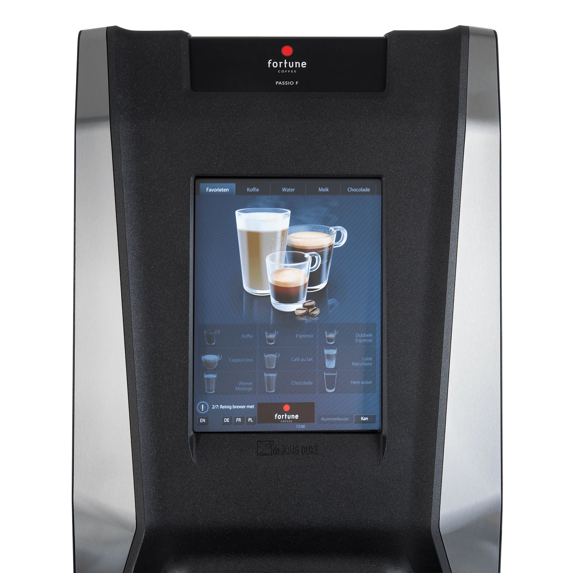 Wil je een koffiemachine kopen voor heerlijke filterkoffie, volledig naar eigen smaak in te stellen? Zoek niet verder: de Passio Fresco voldoet aan al je wensen. Deze koffieautomaat biedt de keuze uit meerdere warme dranken. Op het fullcoulour touchscreen kies je de sterkte van je koffie en de hoeveelheid suiker en melk. Een op maat gemaakt bedieningspaneel voor jullie eigen koffierecepten? Kan gewoon. Verder is deze koffiemachine met papierloze freshbrewunit efficiënt in onderhoud.