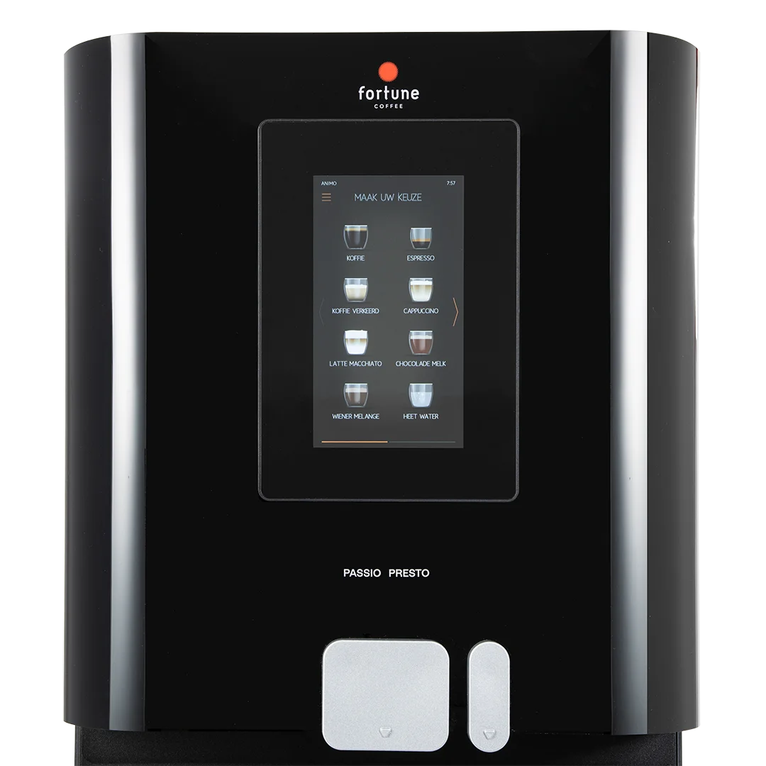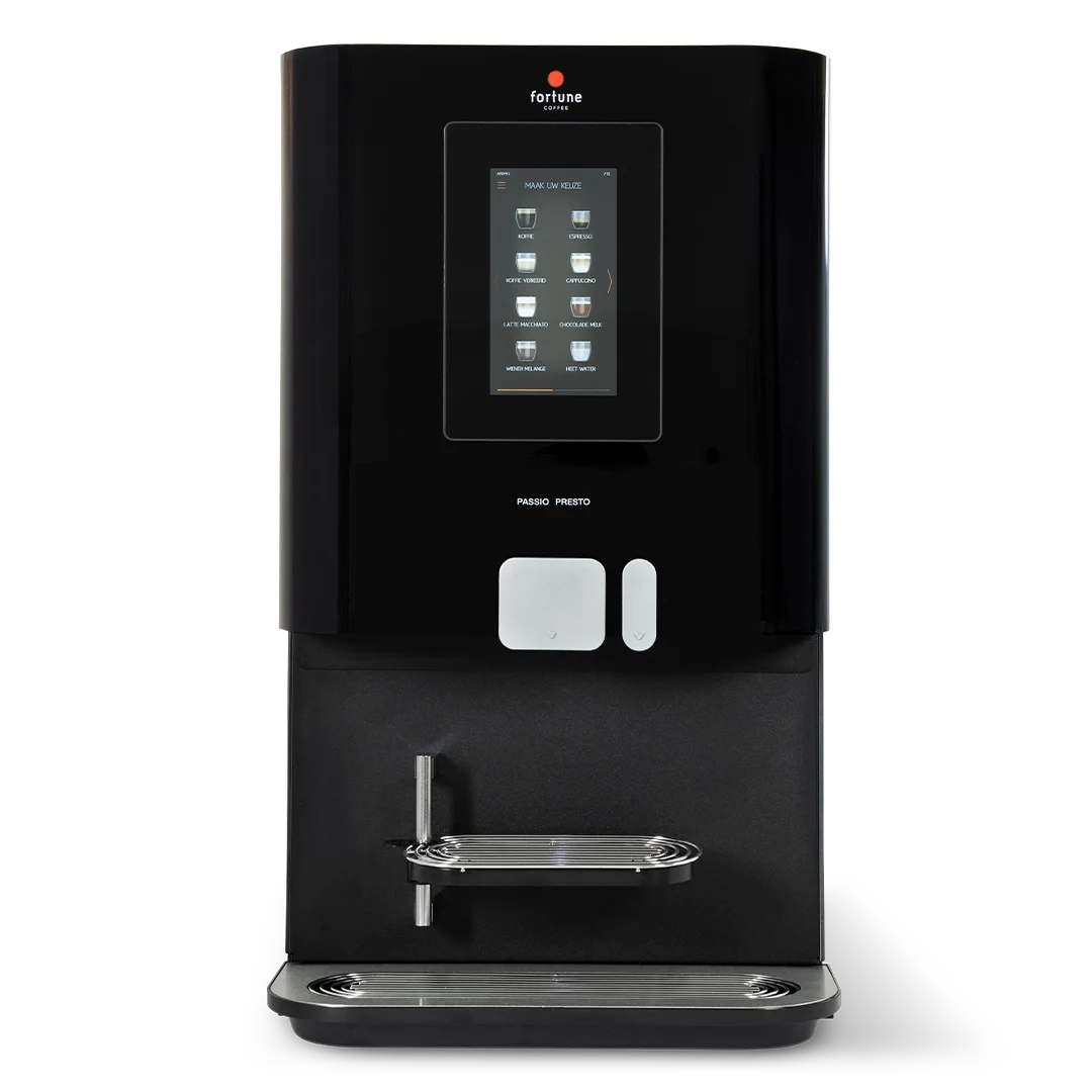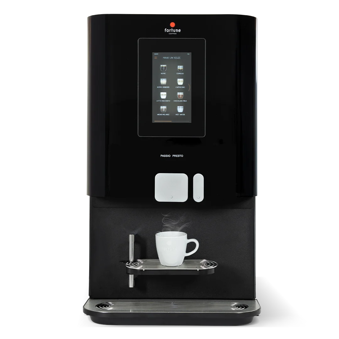 Met de Passio Presto Medium zet je moeiteloos een variatie aan warme dranken. Zoals koffie, espresso, cappuccino, wiener melange en chocolademelk. Het kan allemaal. Samen met jouw Fortune koffieadviseur stel je de koffierecepten samen die passen bij de gebruikers van jouw koffiecorner.