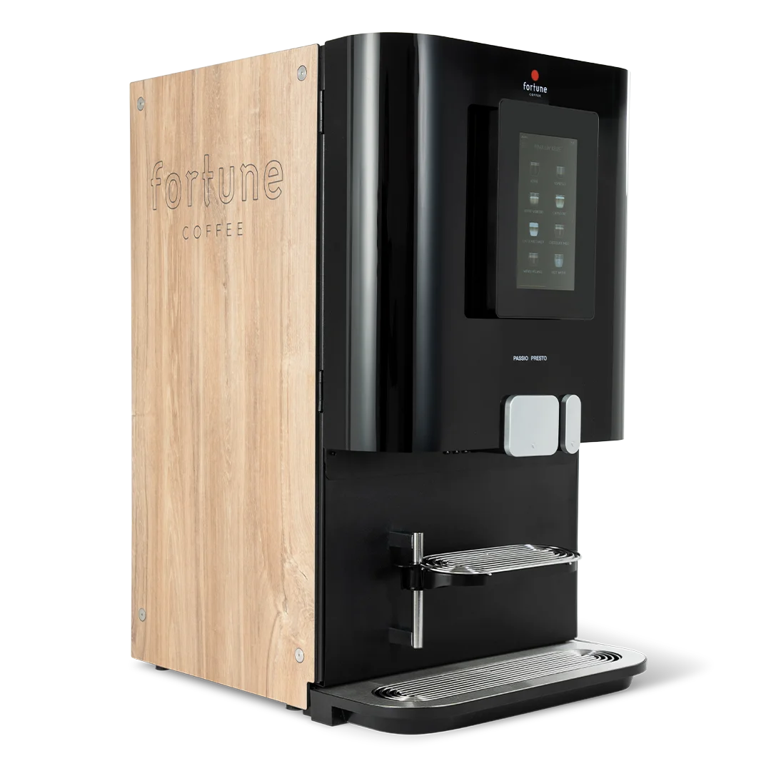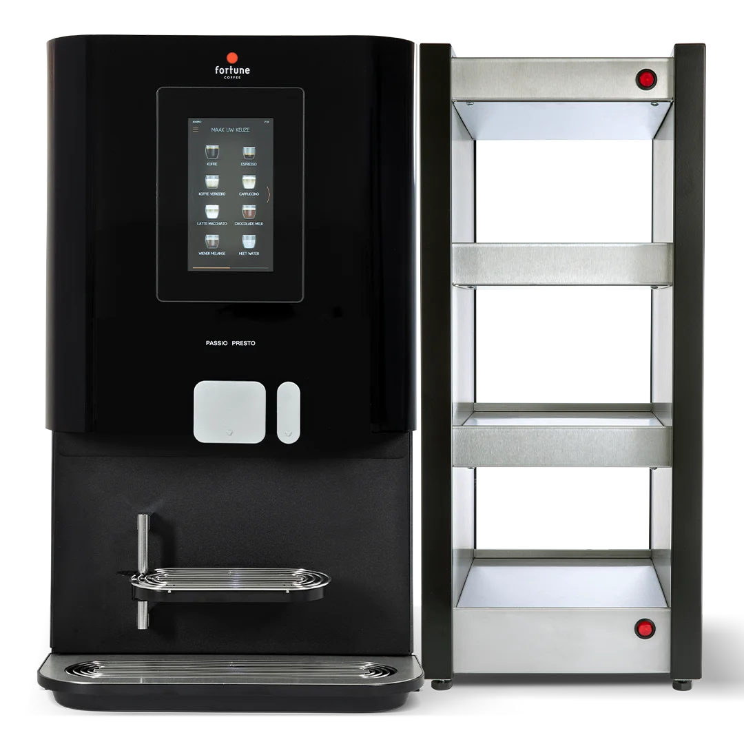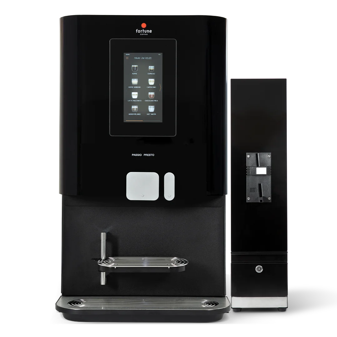 Met de Passio Presto Medium zet je moeiteloos een variatie aan warme dranken. Zoals koffie, espresso, cappuccino, wiener melange en chocolademelk. Het kan allemaal. Samen met jouw Fortune koffieadviseur stel je de koffierecepten samen die passen bij de gebruikers van jouw koffiecorner.