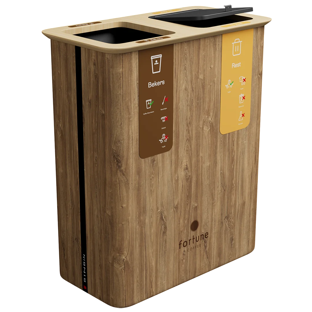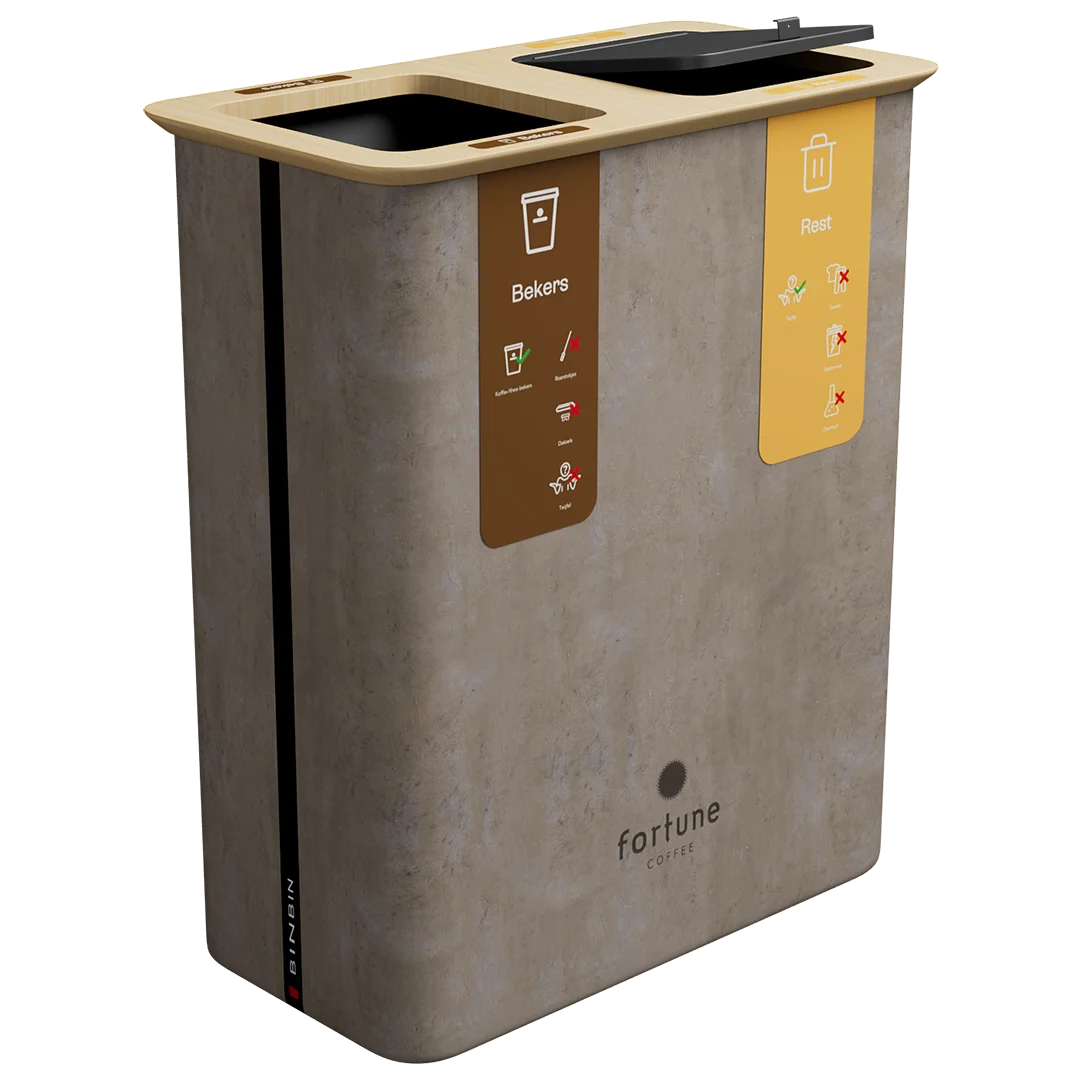 Elke bak heeft een inhoud van 60 liter en is apart in te delen. De bakken zijn ook op te splitsen, zodat je in een bak twee verschillende afvalstomen apart van elkaar kunt inzamelen. Ook er zijn verschillende accessoires beschikbaar zoals een deksel voor de GFT afvalstroom en een bekerinzet voor het inzamelen van herbruikbare bekers.